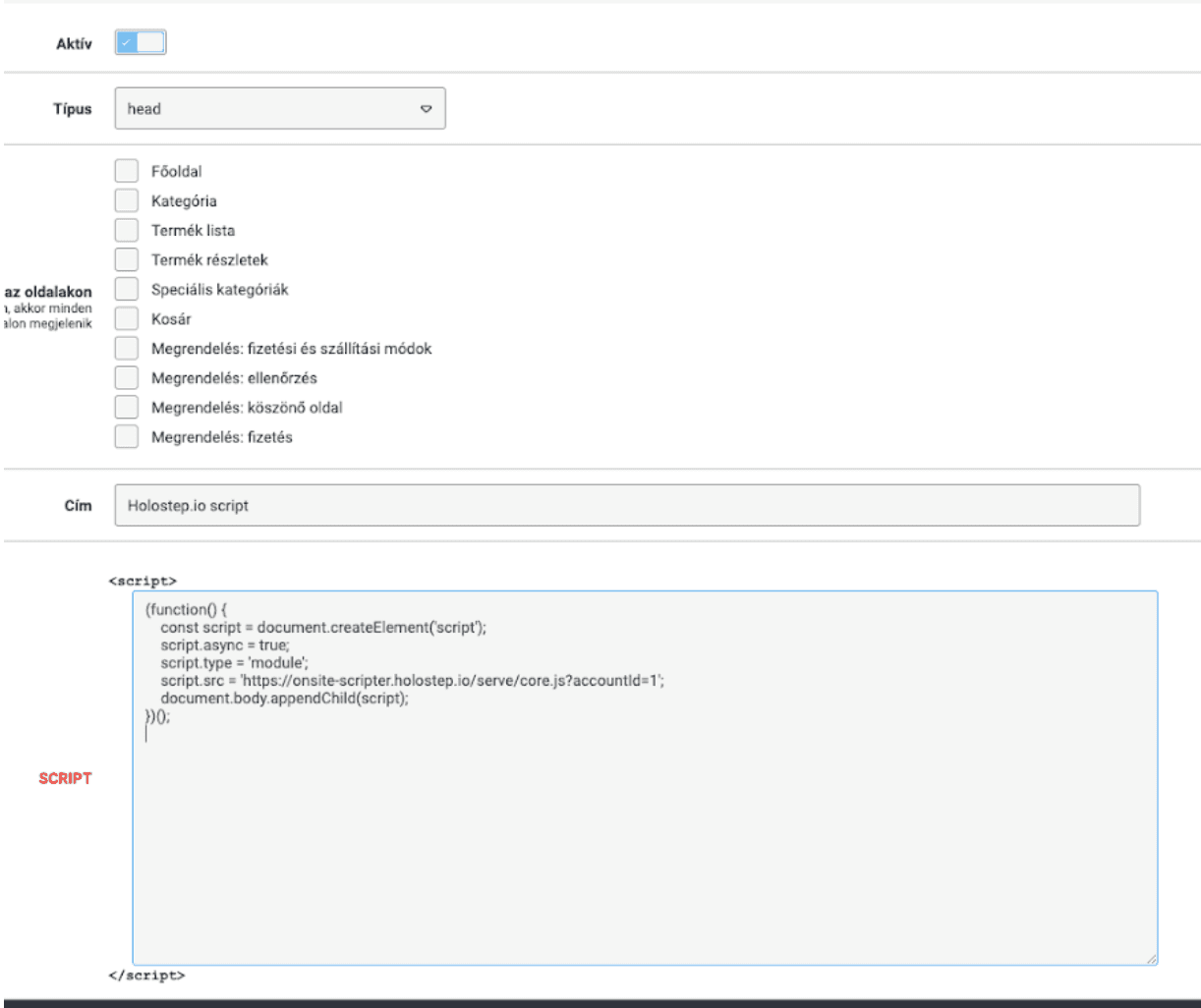 • A következő felületen illeszthető be a script: