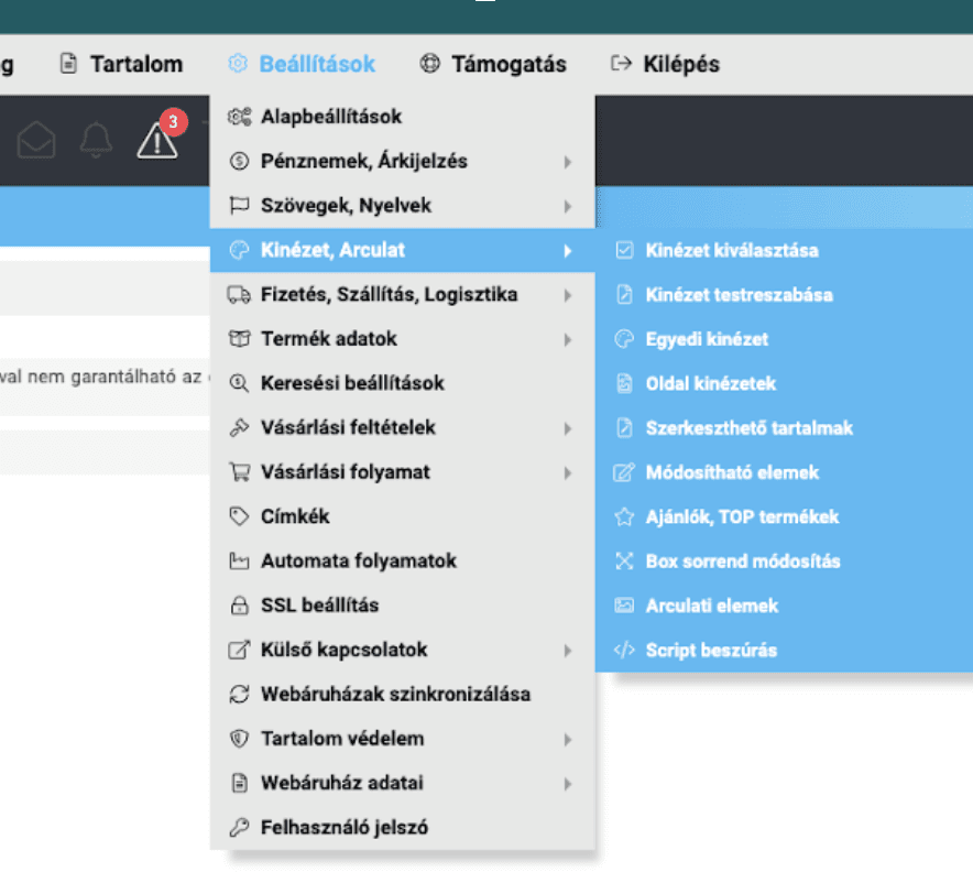 • A kék menüablak utolsó pontja “Script beszúrása” segítségével egyszerűen hozzáadható a generált kód a webshophoz